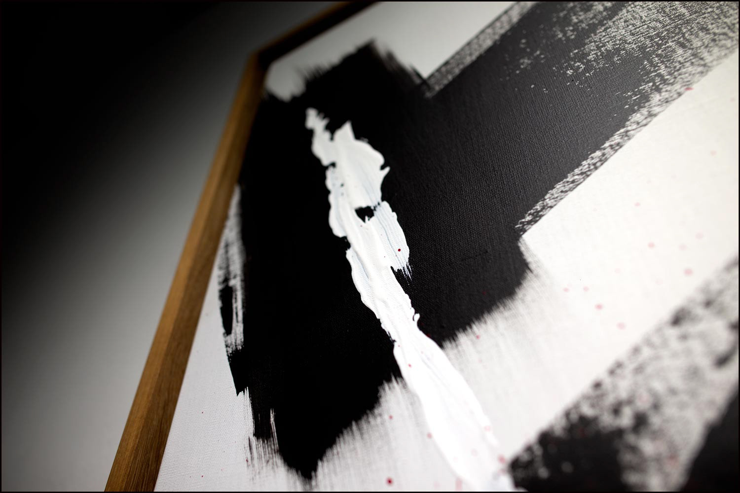 Chinese ink and acrylic painting on canvas, teakwood frame