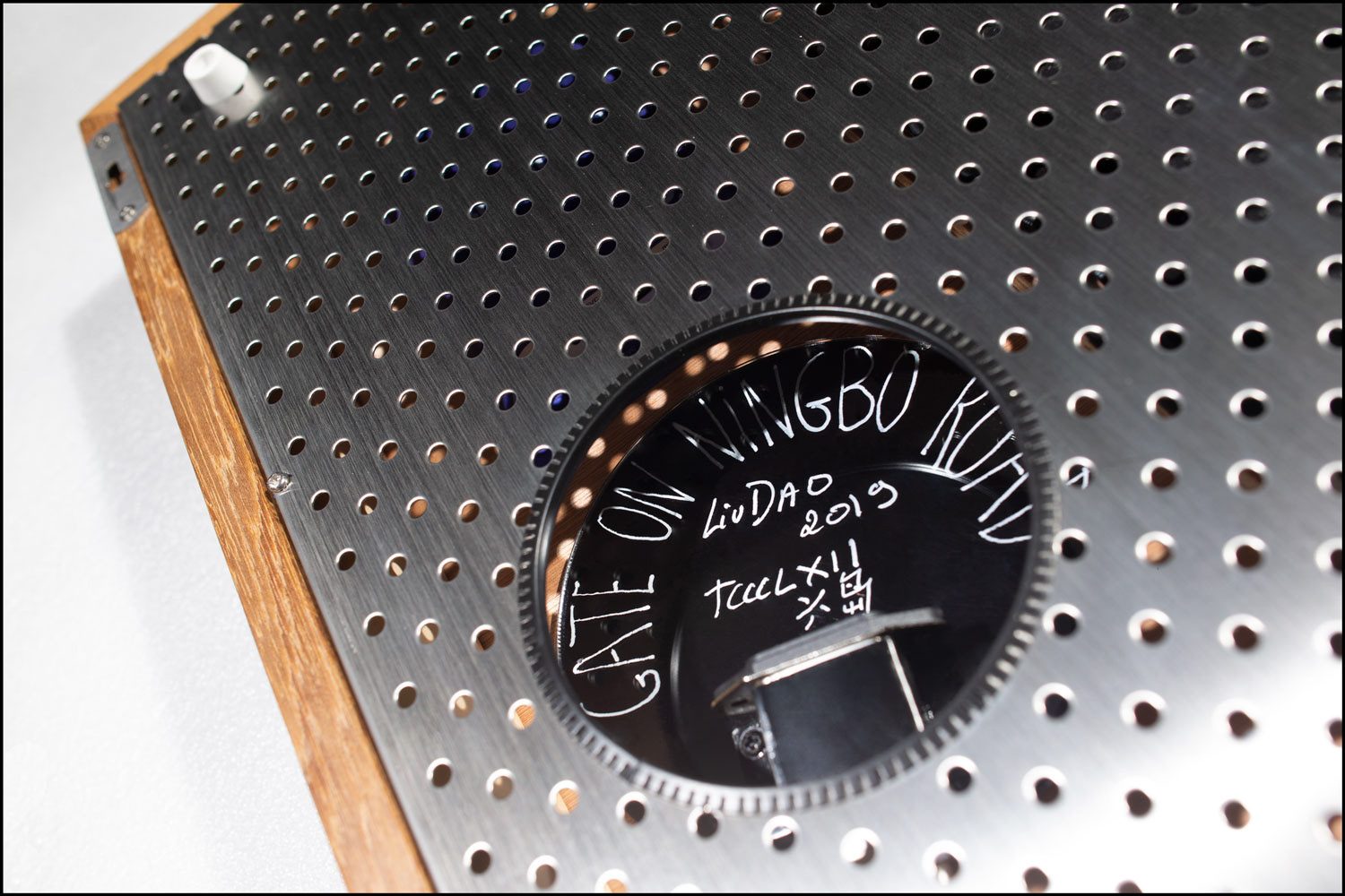 TFT display, acrylic painting on Plexiglass, teakwood frame