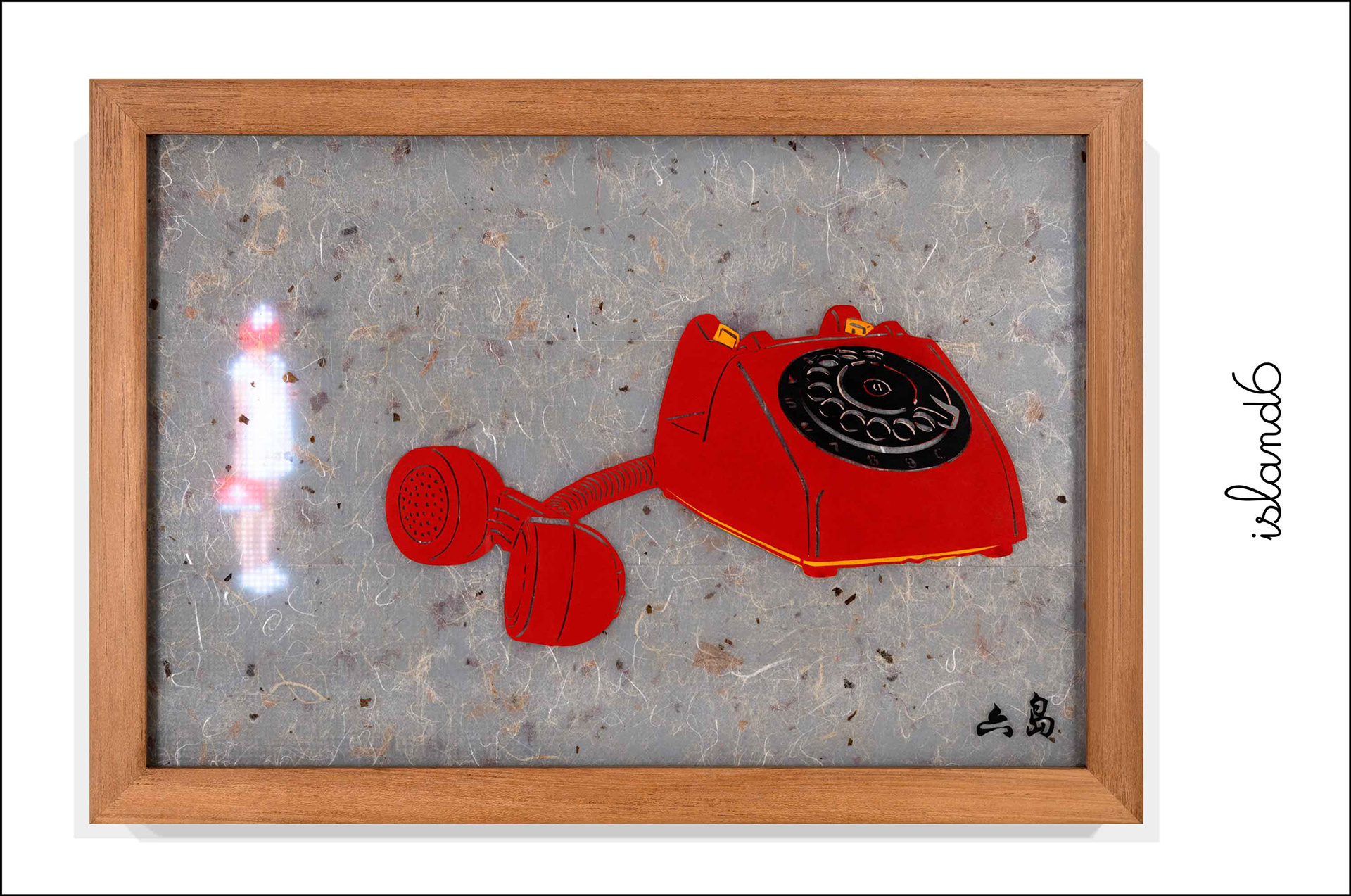 RGB LED display, Chinese papercut (Jian Zhi 剪紙) on Plexiglass, paper collage, teakwood frame