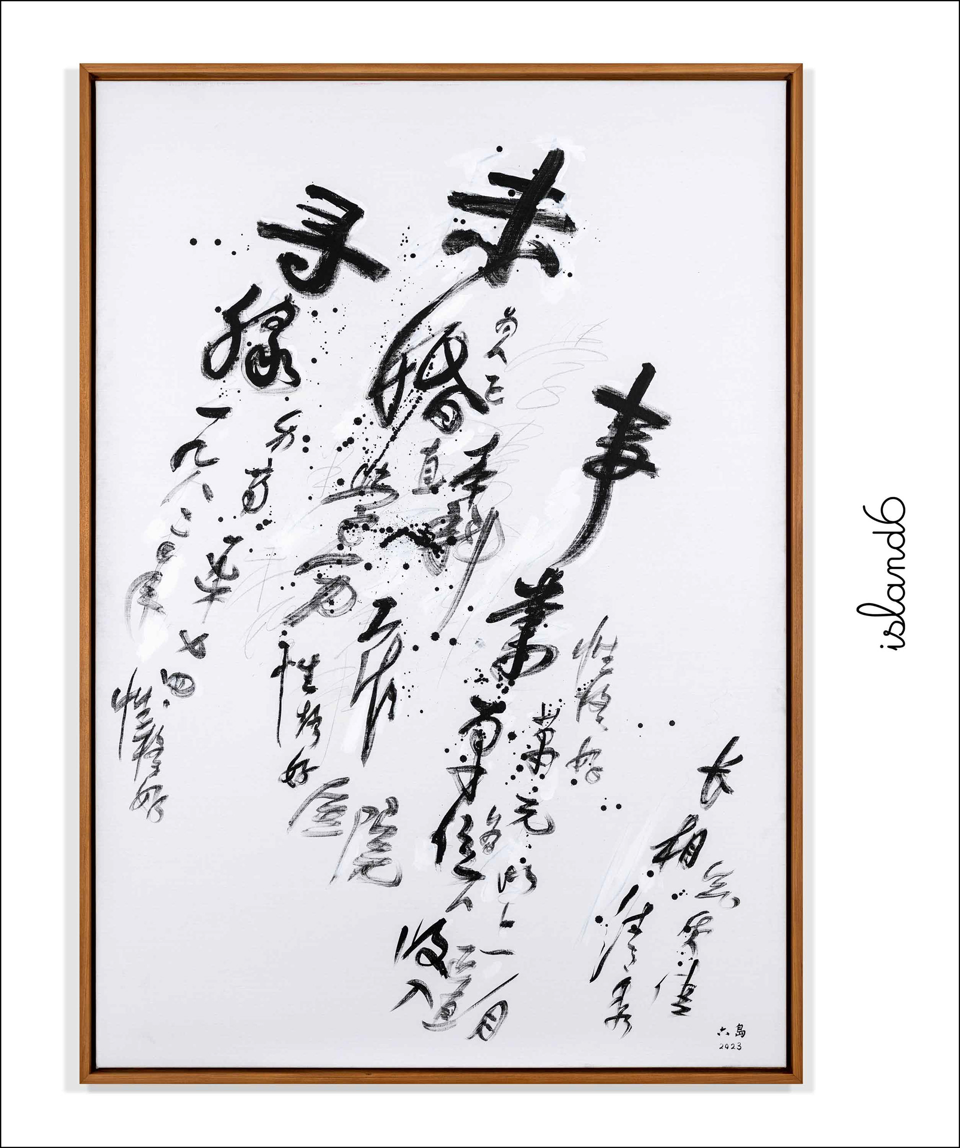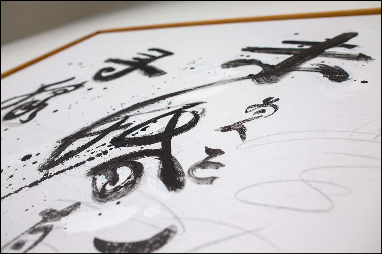 Chinese ink and acrylic painting on canvas, teakwood frame