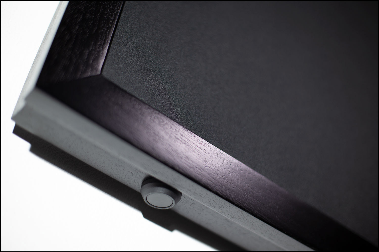 RGB LED display, silk & elastane, black-stained teakwood frame